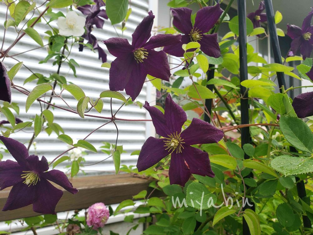 オベリスクから飛び出て、隣のバイカウツギにお邪魔しマース🌱| ε:) ニョキ🌱| ε:) ニョキ