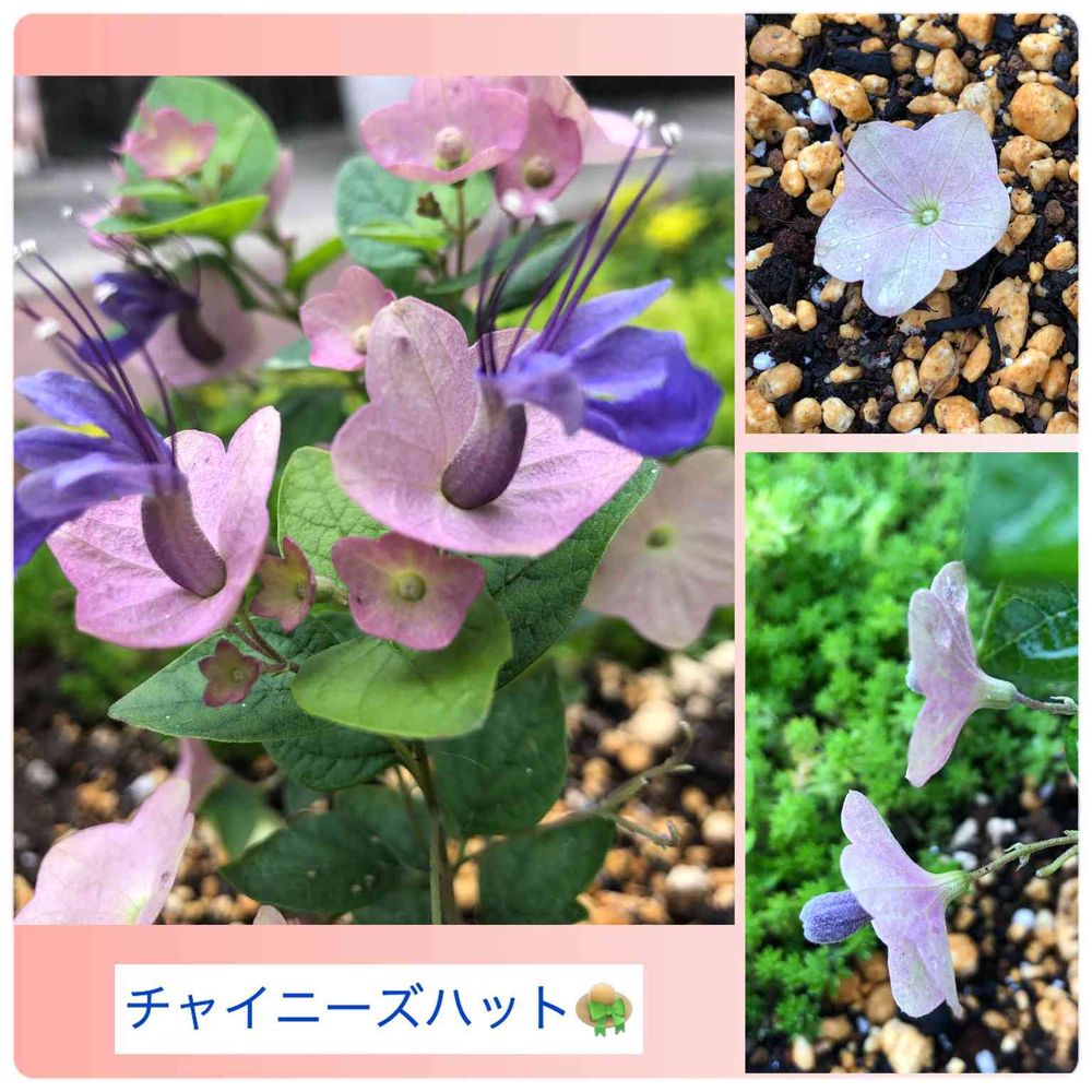 チャイニーズハットとは、シソ科ホルムショルディア属の常緑低木のことで、別名「タヒチアンハット」とも呼ばれています。ガクの形が中国の帽子に見えることが名前の由来で、初夏~秋にかけて蝶々が羽ばたくような姿の愛らしい花を咲かせます。耐寒性に弱いため冬越しには注意が必要ですが、花姿が美しく育てやすく、観賞用として人気とか、コピペしたよ🤣