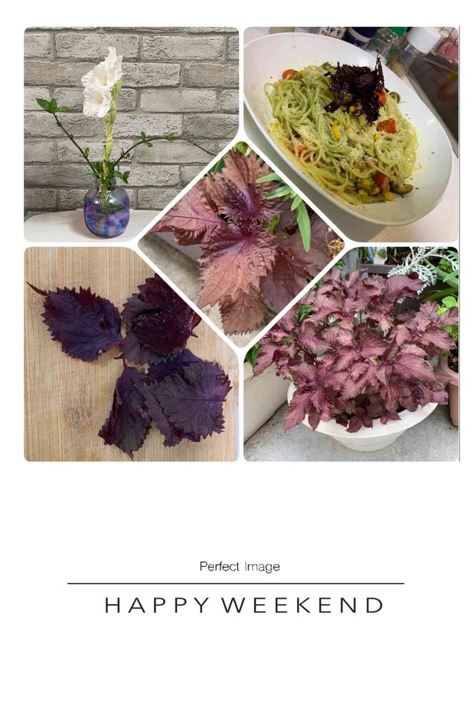 今朝、収穫した赤紫蘇を早速ジェノベーゼパスタを作って利用しました