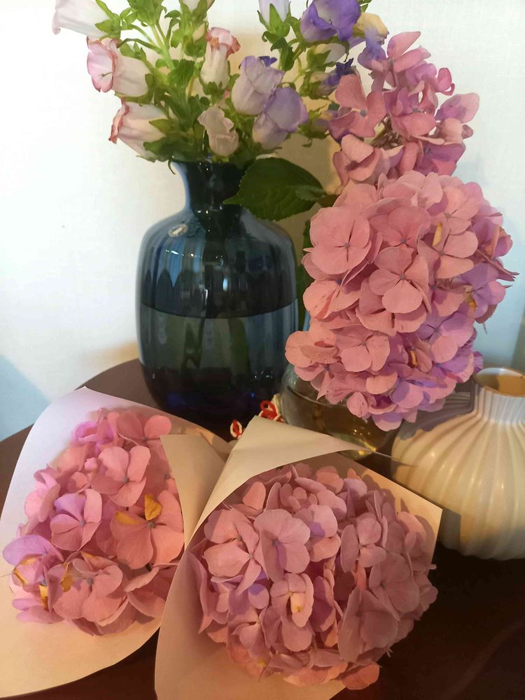 昨日飾った紫陽花、早くも萎れて(笑)ドライになるのもすぐかも