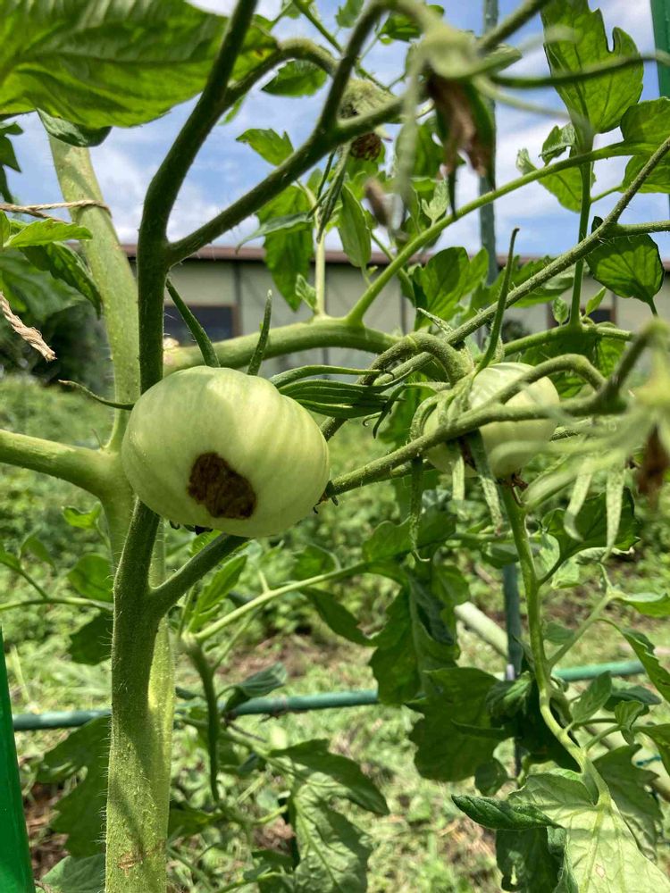 大玉の世界一トマトに尻腐れが発生。カルシウム剤を散布しています。