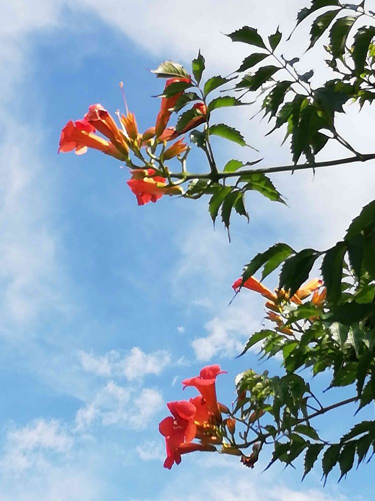 空に向かって、ノーゼンカズラが一生懸命に咲いていました😃🌺🌿🌿