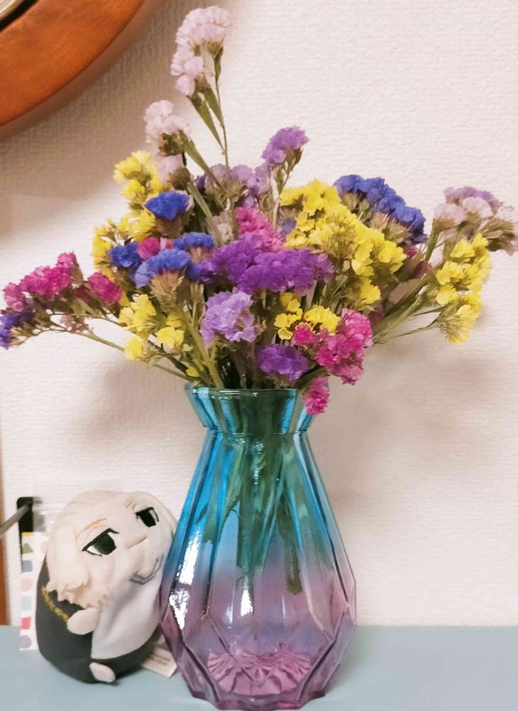 フォロー有り難うございます😃スターチスのドライフラワー綺麗な色に仕上がってますね素敵です🤗