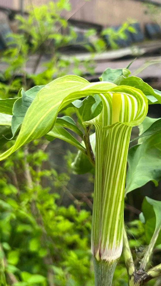 マムシ草。中国山地の道後山の登山道の脇に沢山ありますが、毒性があるので刈られていました。茎が毒蛇のマムシの柄に似ています。