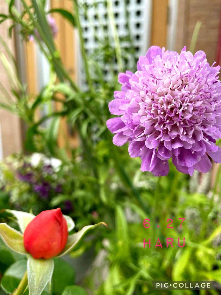 haruさんのバルコニー/ベランダ,スカビオサ,バラ アプリコットキャンディーの投稿画像