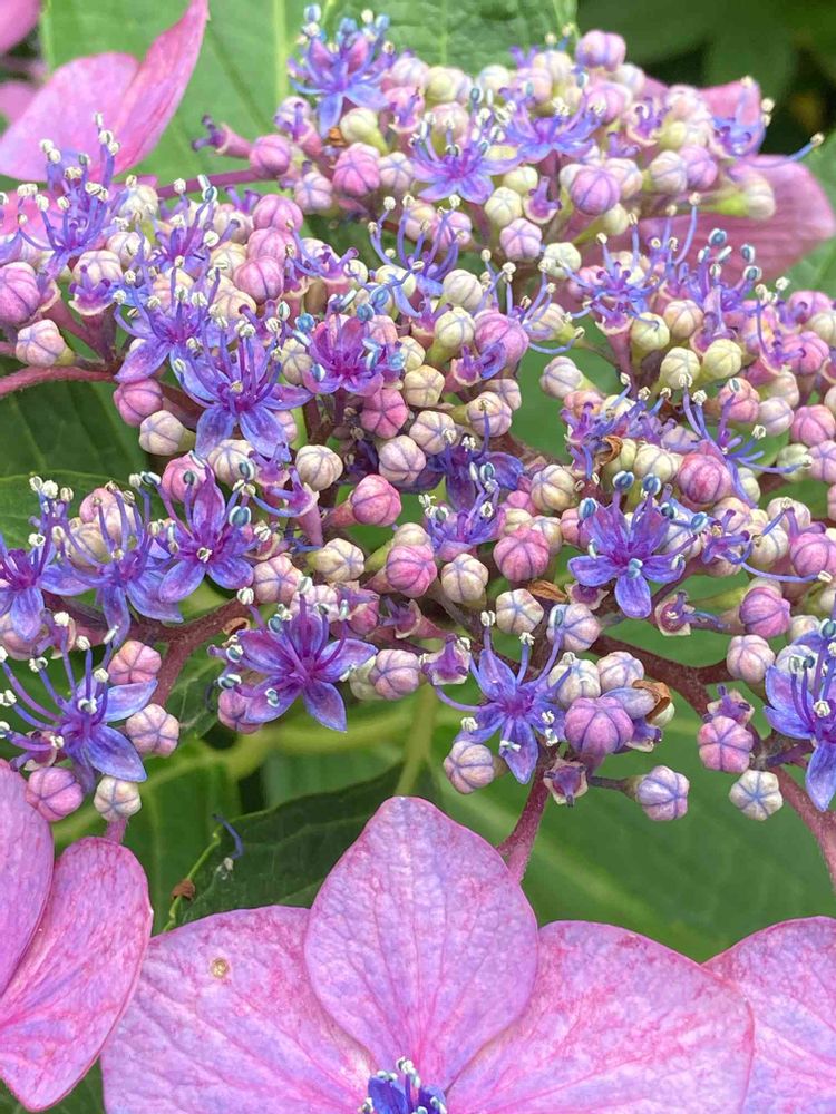 ガクアジサイって、周りの大きな花に目が行きがちですが、こうやってズームしてみると、中の方にもかわいいお花が咲いてるんですね☺️🎶