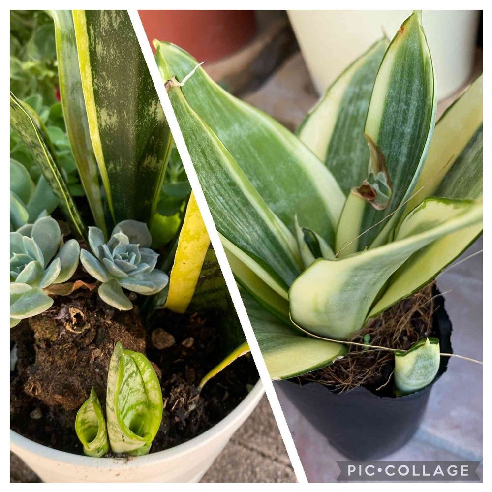 我が家のダイソー産サンスベリア2種、タケノコみたいに新芽が出てきました🌱