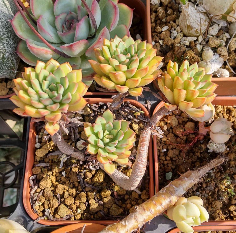 夏が来る度にロゼットが小さくなって、いつまで経っても大きくならないんですよね。下手に日除けすると徒長するし……😿☀️🧱🥀