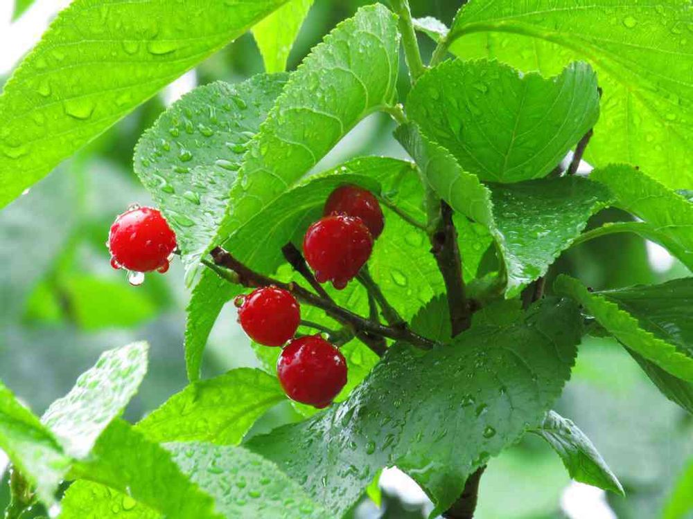 雨に濡れたさくらんぼ🍒がまた初々しいですね(๑˃̵ᴗ˂̵)お庭でとれるなんて羨ましいです😆