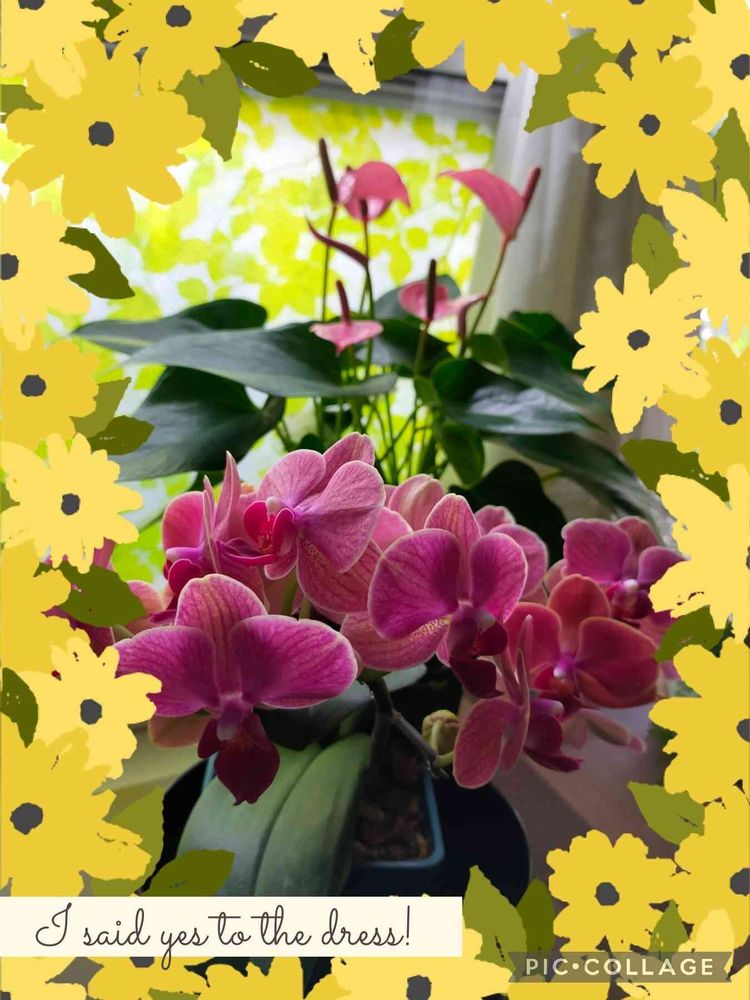 窓辺で数年経つアンスリュームとミディ胡蝶蘭