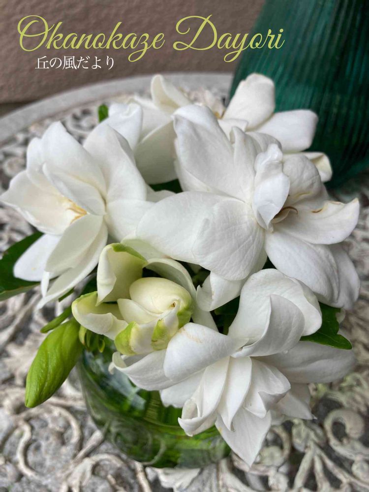 クチナシ三昧、まだまだ続きます😅今朝は外に生けて見ましたー✨あと1回くらいイケるかな、、もういい?🤭