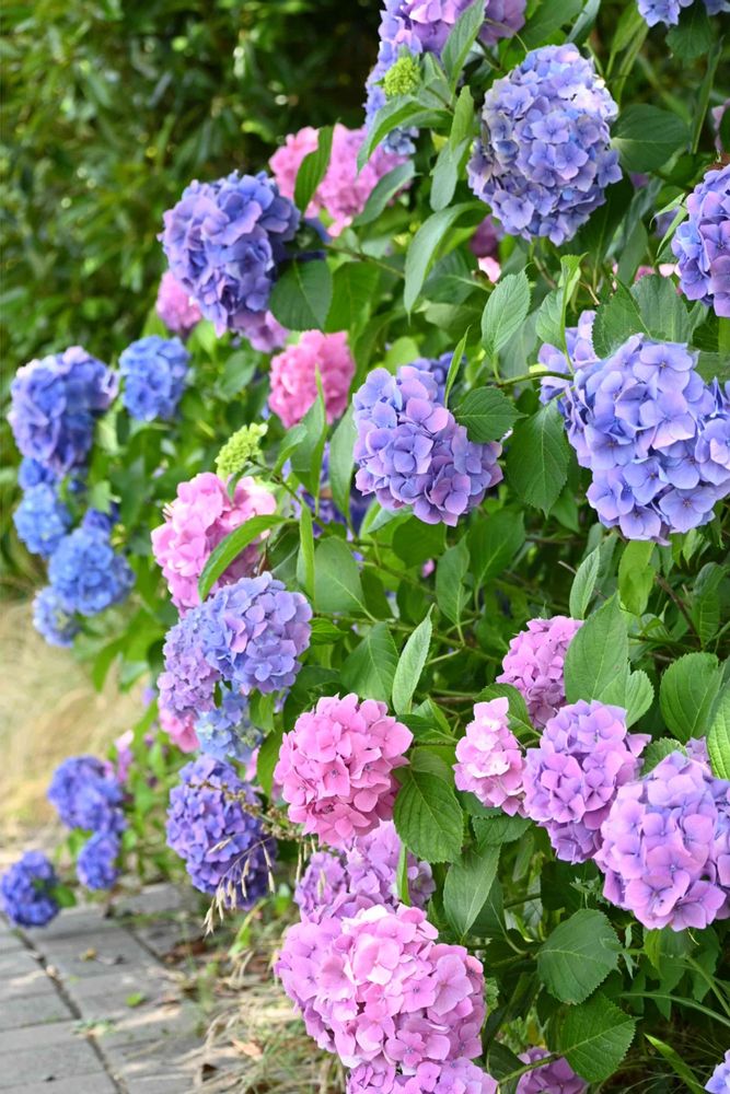 一つの株から、ピンク、ブルー、紫と、色変わりする紫陽花が綺麗です💜💗💙🌿✨