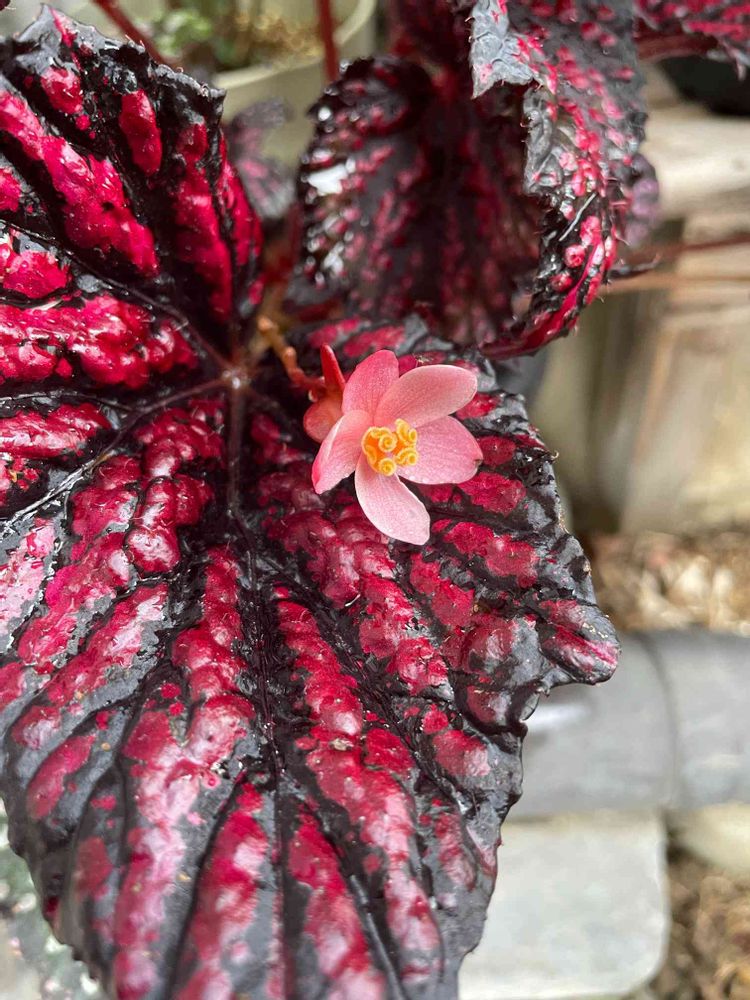 レックスベゴニアに花が咲きました。もっと咲けよとは思いますが。こんなもんでしょう。