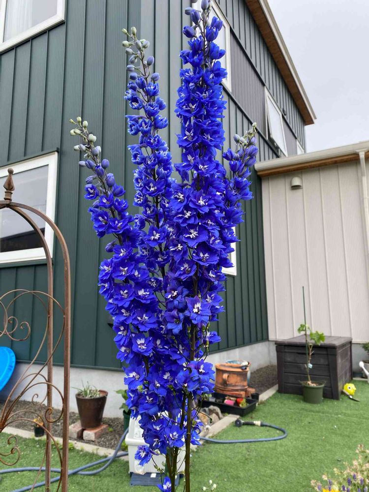 この青は160センチないくらいの高さです☺️この大きいデルフィニウムは越冬するので嬉しいです。小さい可憐なほうのデルフィニウムは残念ながら越冬せず、、。