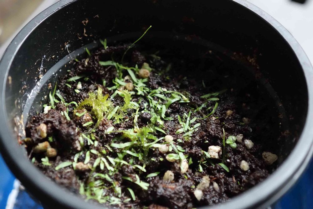 よく見たら小さなムシトリスミレっぽいモノも生えておる。同じく水苔に種子でも混ざっていたかな?品種はなんだろね(*’艸’)