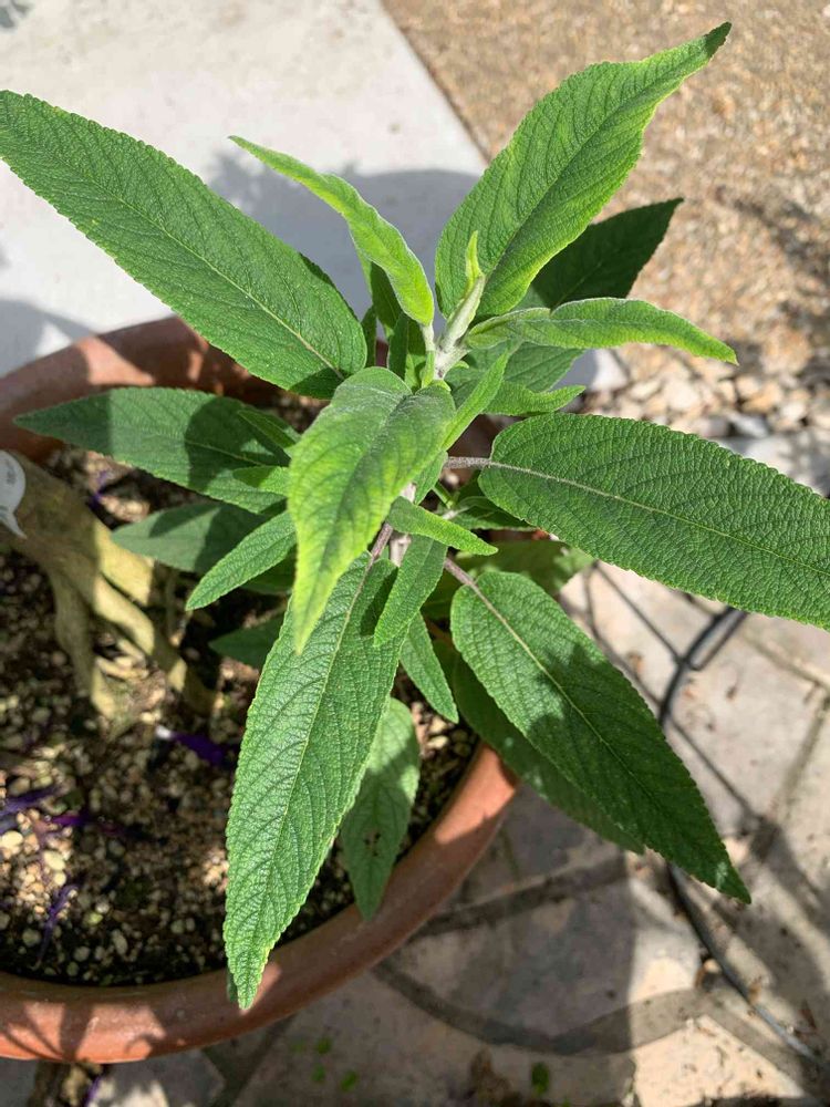 おそらくレモンの鉢に勝手に生えてきたアメジストセージでしょうか。