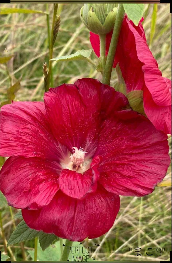 花びらの形が丸っこい可愛らしいタチアオイですね🌺🌿😍❤