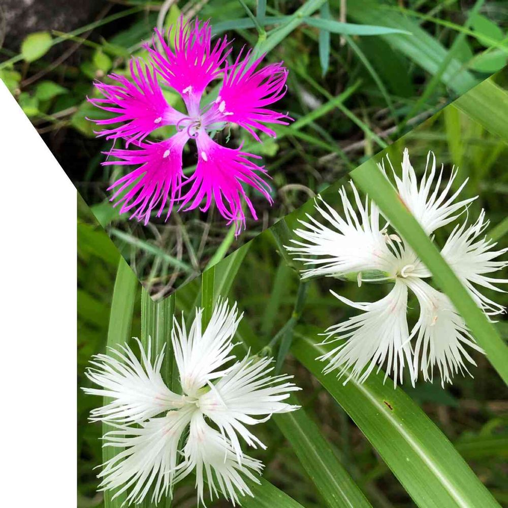 「白花カワラナデシコ」さんが「赤花」さんのそばで咲いていました。