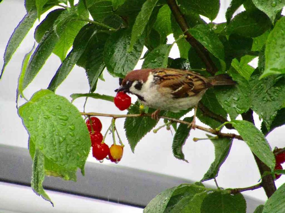 雨の中、しっかりサクランボ🍒摘んでるところが、可愛いです💕
