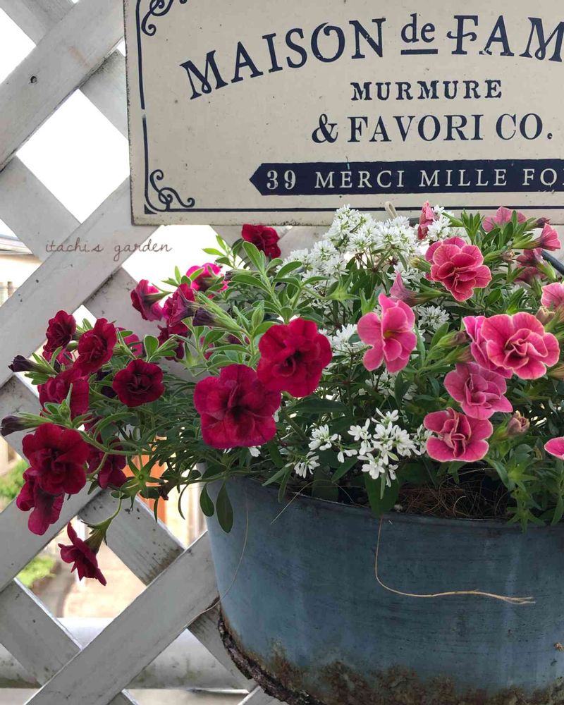 バルコニーで育てているスーパーベルダブル2色植え💕❤️