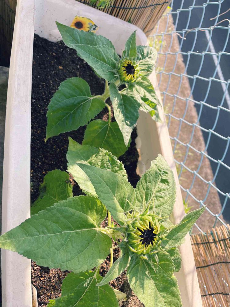 2022ー6ー28(火)晴れ☀️ 定植したヒマワリ🌻🌻 きっと 庭の外を向いて咲く😆😅んだろうなぁ〜