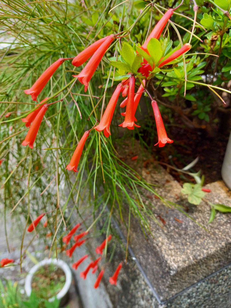 赤い❤️ラッパのような形のお花がたくさん咲くと見応えありますね😃