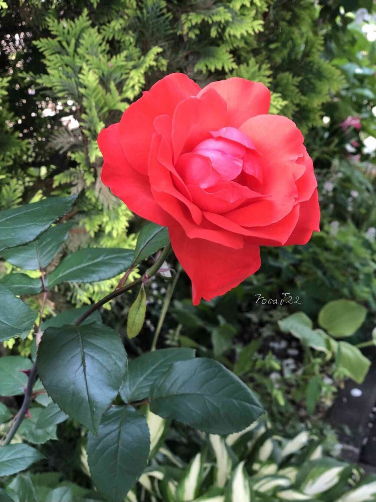 小さな庭,バラ,スカーレットクイーンエリザベスの投稿画像