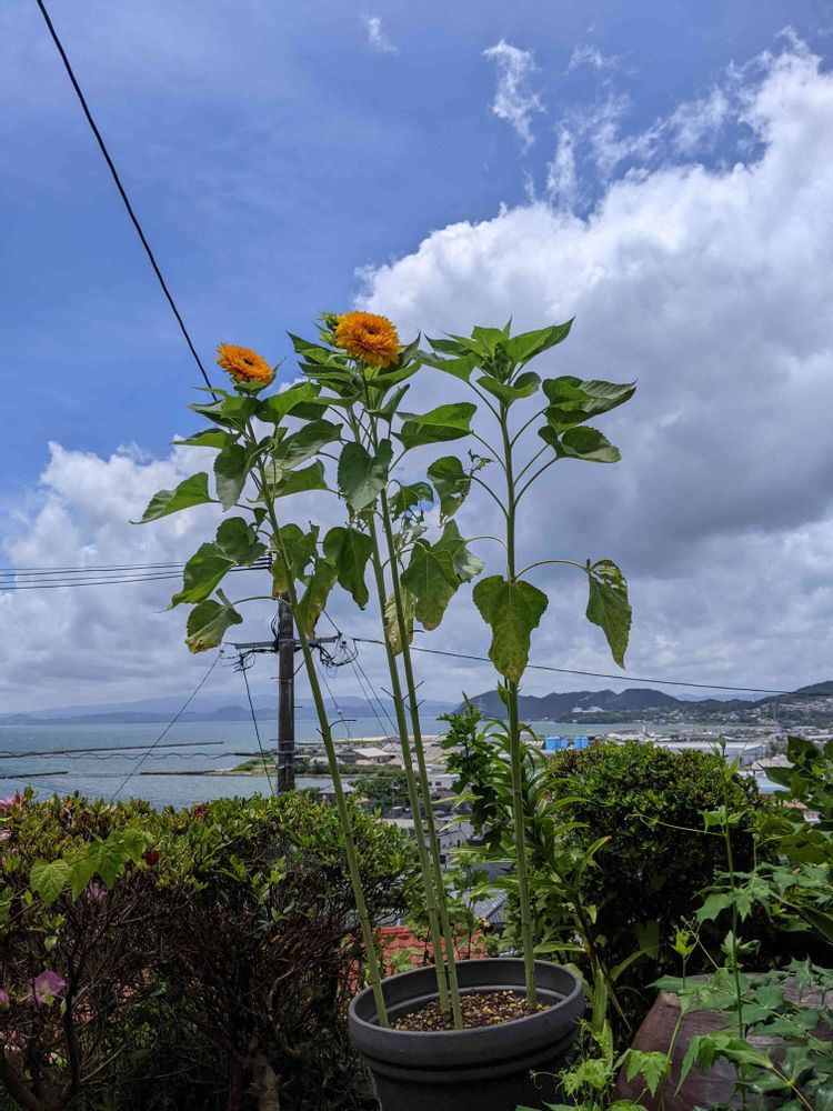 九州北部地方も、梅雨明けしました。ひまわりの鉢を、木戸先へと移動しました。🌻👍水やり大変になりますが、がんばります。😂😅😱