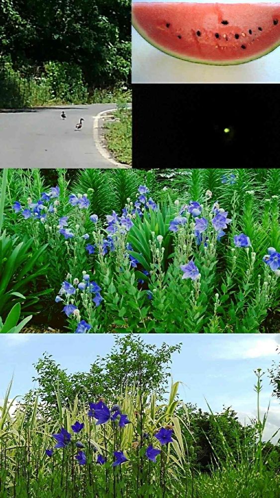 散歩の時、前をカモ夫妻が歩いていて一緒に散歩したみたいで癒されたし、夜は蛍が出ています🦆🦆