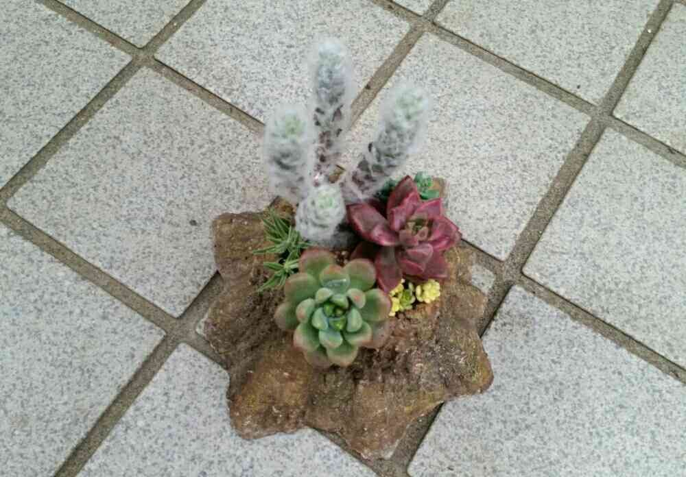 玄関,寄せ植え,モルタル切り株の投稿画像