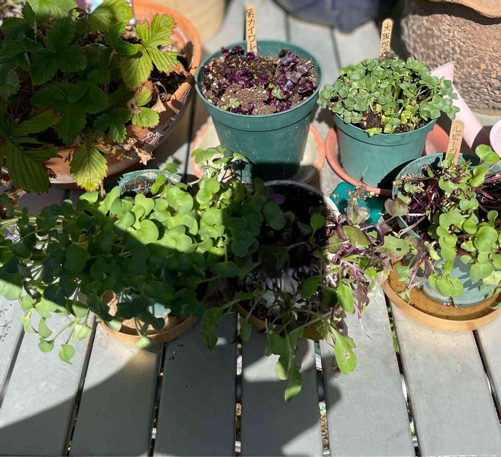 バルコニー/ベランダ,ルビーカイワレ大根栽培,紫カイワレ大根栽培の投稿画像