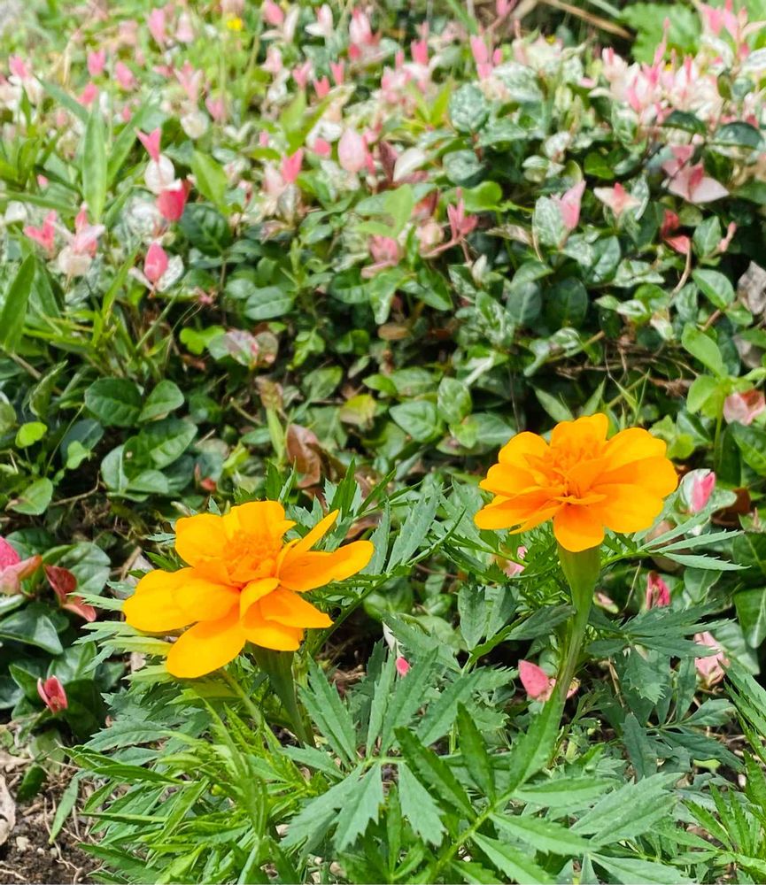 ジニアやマリゴの零れ種がいっきに咲き始めました🌼🌸