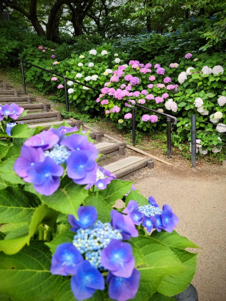 公園に、紫陽花のお花が綺麗に咲いていました。