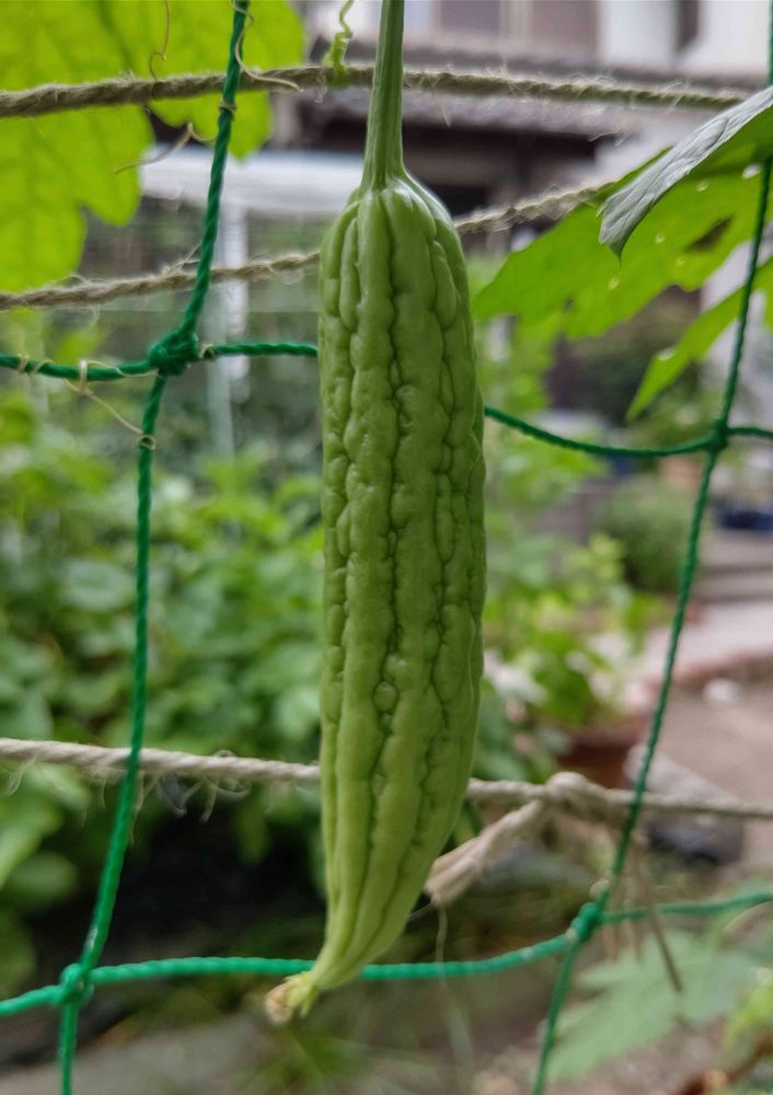 いつもの濃い緑色のごつごつゴーヤと違う😣