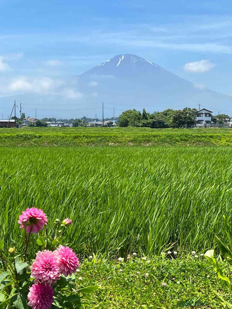 どんどん稲は大きくなりますね😄ダリアと富士山 爽やかなで 気持ち良さそうですね〜💙😄
