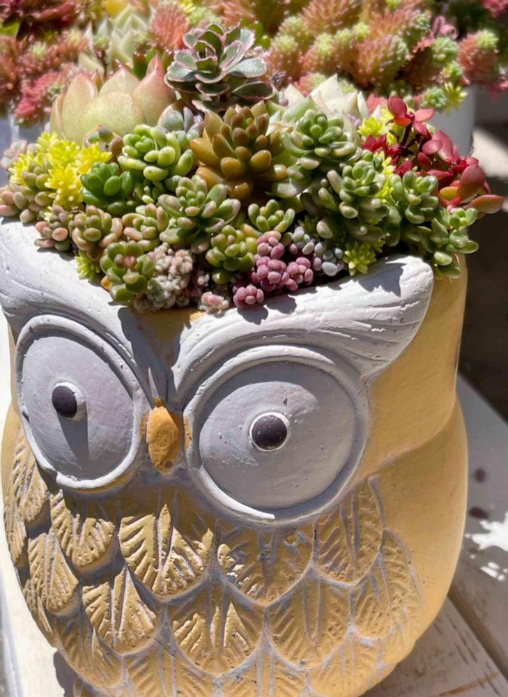 頭に可愛い寄せ植えのフクロウちゃん上手に撮れてるよ💕