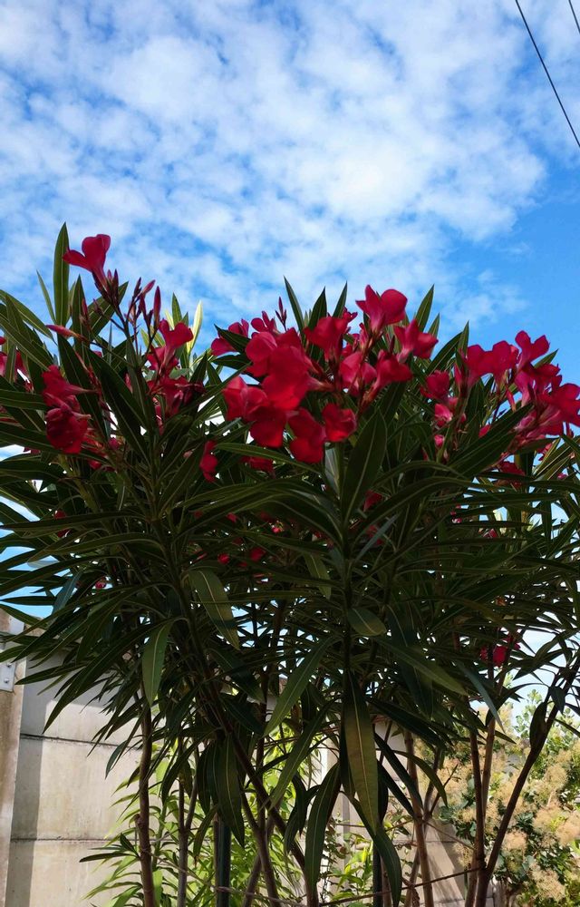 数年前に濃い赤のキョウチクトウを探して植えました😊 やっぱり夏は青空にキョウチクトウですね🤩