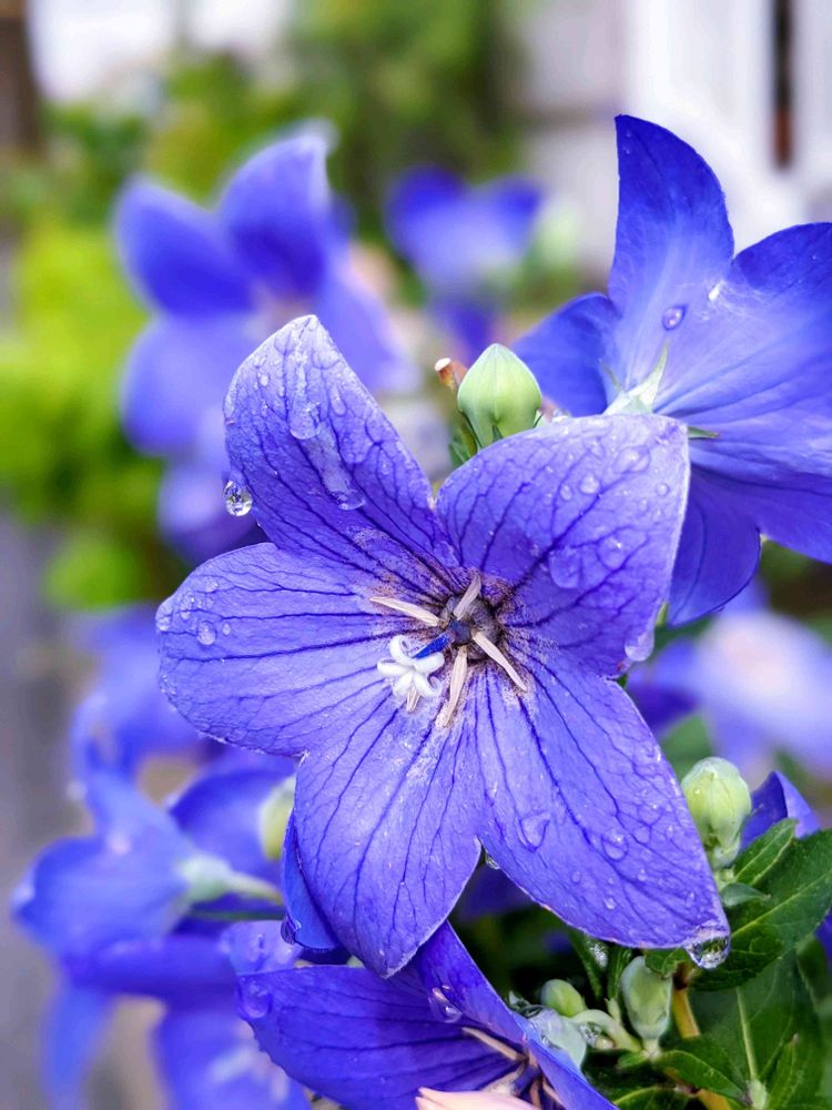 雫を抱えた桔梗の華やぎ素敵だなぁ🎵