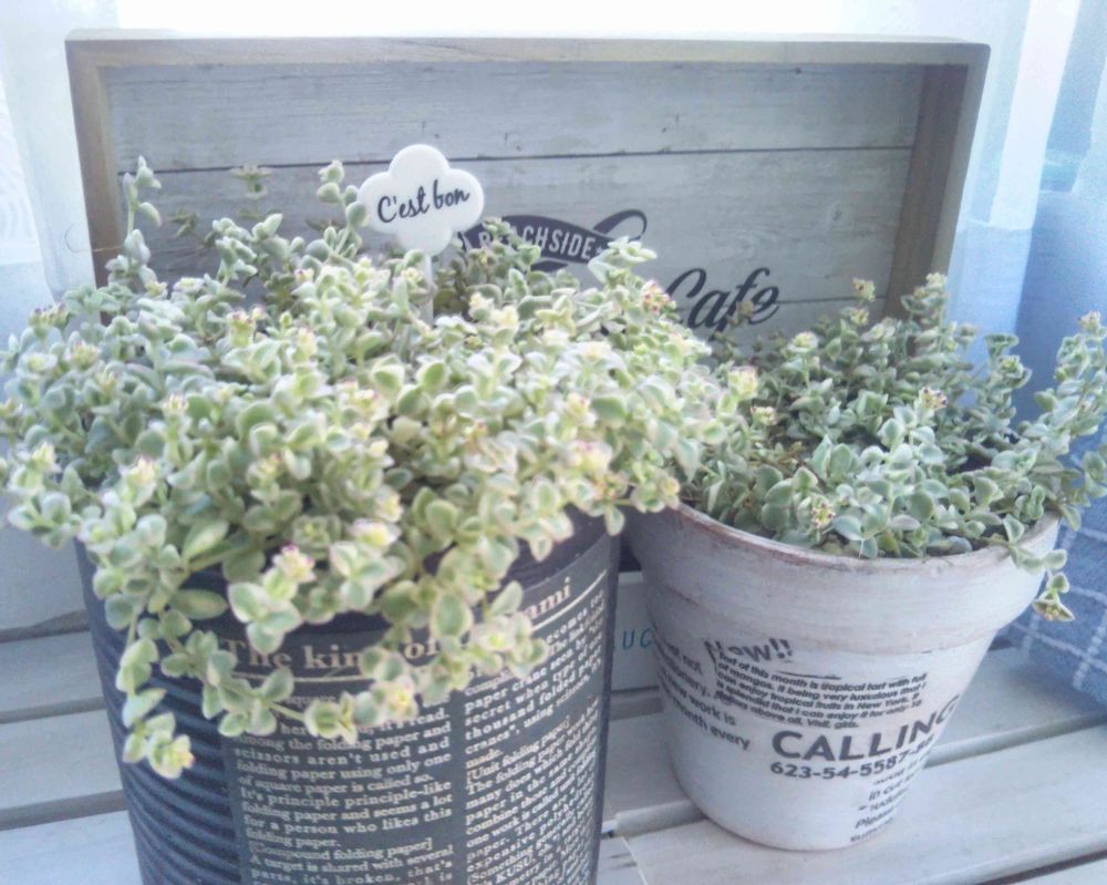 もりもり増えてきて喜んでいたましたが、少し前からリメ缶の鉢の中央がパカーンと割れて茶色く枯れてきてしまいました💦