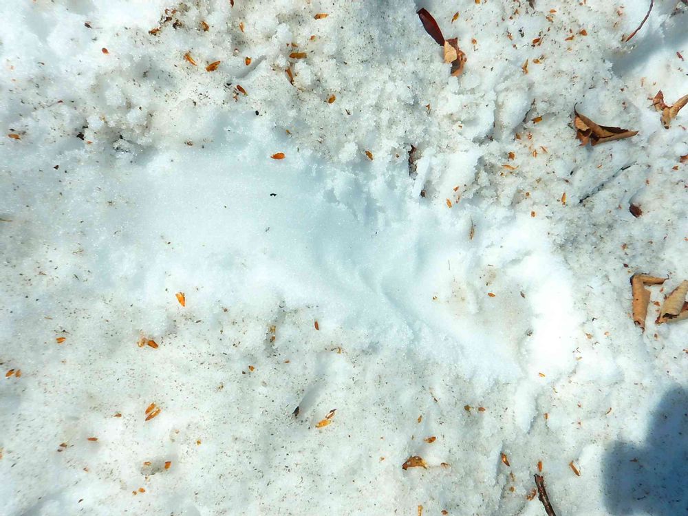 写真は、逃げ出したクマ🐻が、スリップした跡です。慌てたのは私だけでなく、クマさん🐻もなんですね。