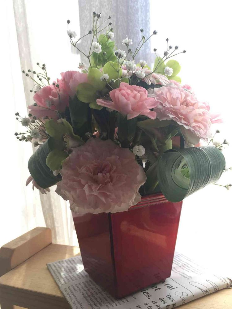 可愛いピンクのアレンジに年甲斐もなく、心踊りました😊