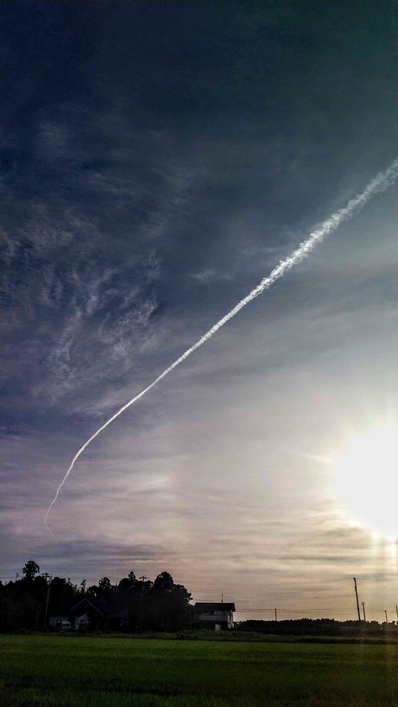 画像編集で飛行機曇を浮き立たせているので暗めになっちゃいました。アハ😅