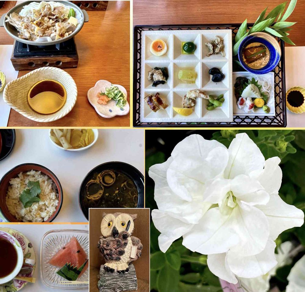 お造り、煮物、子芋ご飯、赤だし汁、☕️