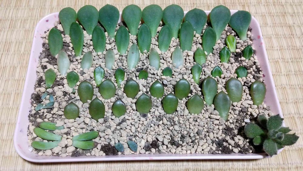 写真は最近胴切りした多肉の葉挿し。上から、みどり牡丹、春萌、黄麗錦(?)、不明、ブロンズ姫、↙️乙女心、↘️熊童子。乙女心は葉挿し成功したことないので、チャレンジです!