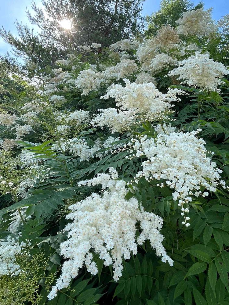 生花のコサージュをつけるなら、この花にしたいが機会がない。咲ききる前の白玉の蕾もいい。一週間前から満開になるのを待っていたが、いまが壮観。2~3mの樹高で、空き地にあるこのホザキナナカマドは、別格の偉容。