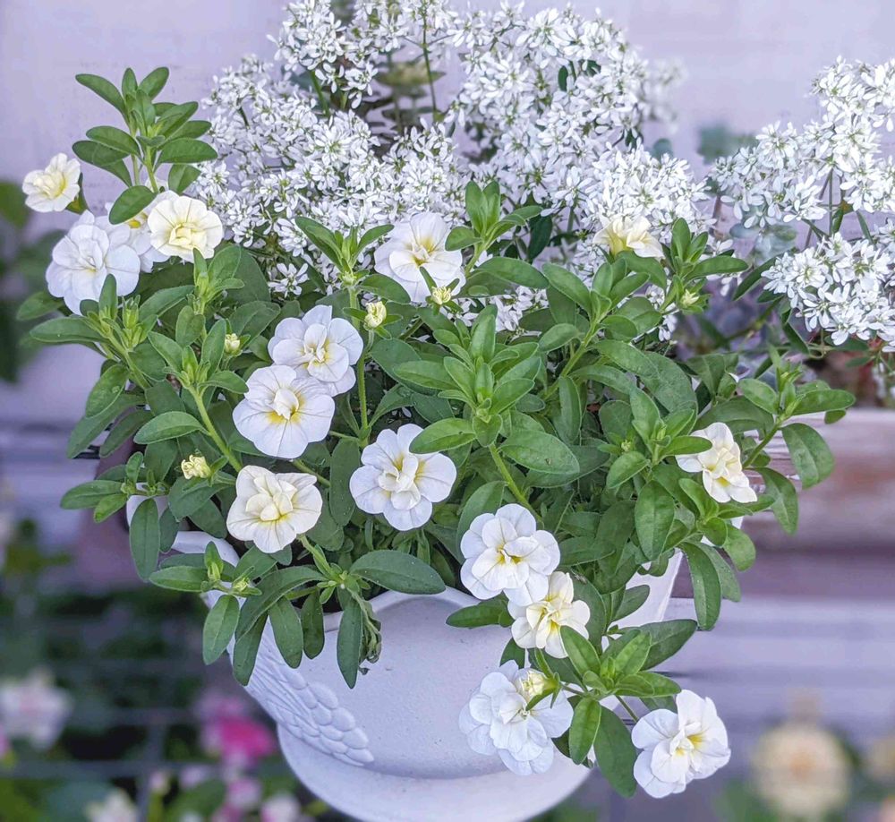 暑い日が続きますが、PWさんのユーフォルビアとスーパーベルは元気✨夏向けに白い寄植え作っといて良かった🤍