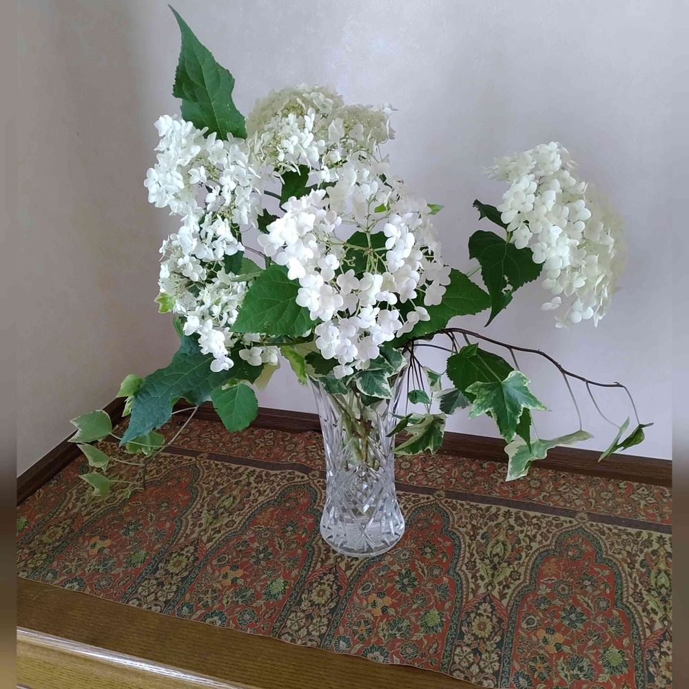 暑さのせいか、アナベルが緑になるのが早いです!なるべく、遅く咲いて、まだ白いのを選んで切ってきました😉
