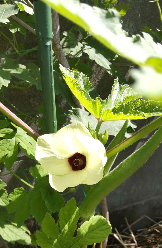 オクラの花、シンプルで好きです😍😍
