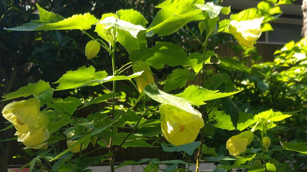 ちょっと心配していたアブチロンが、又黄色のお花を咲かせています。