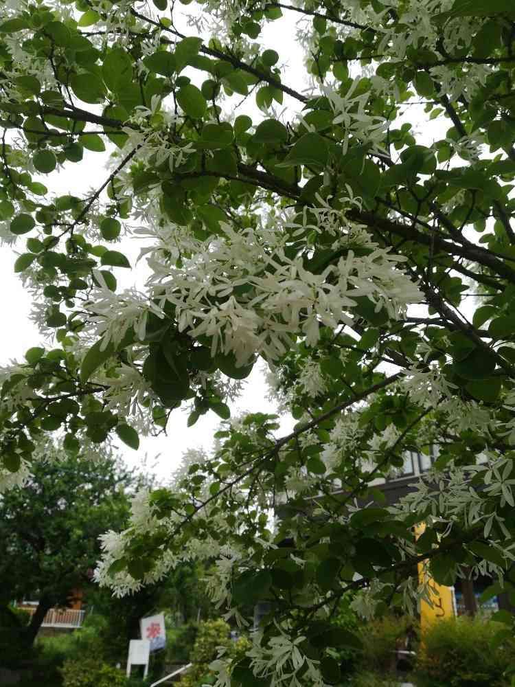 見分けかたは、アオダモは同じ場所から葉っぱが出ているのにたいして、ヒトツバタゴは、互い違いに葉っぱが出ています。